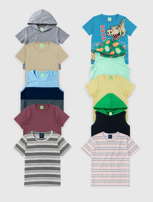 Kit com 10 camisetas infantis masculinas